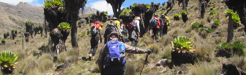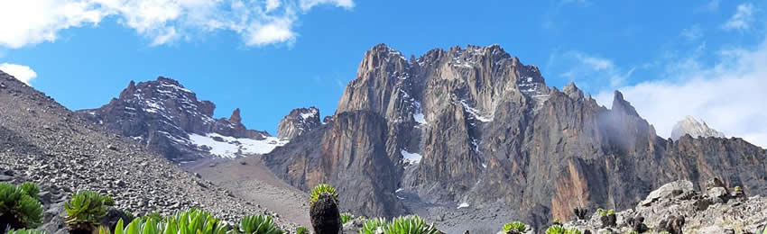 Following breakfast, we continue our ascent, taking the right fork at a junction. After a water break, we follow the trail, crossing Ontulili River and then contouring through the Moorland. We cross Liki North River and continue uphill to Mackinders Valley, where panoramic views of the Shipton Campsite and its towering peaks and glaciers greet us. Shipton Campsite is a surreal setting inhabited by rock hyraxes and sunbirds.