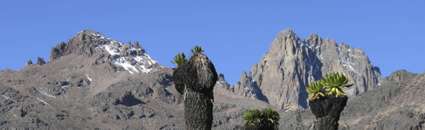 The Chogoria-Naro Moru route stands out as the most picturesque and captivating path leading to the summit at Lenana Point. The first night of this expedition involves ground camping at Meru Mt. Kenya Lodge Bandas, with the option to upgrade to the Meru Mt. Kenya Lodge Bandas at an additional cost. The descent can be done either via the Naro Moru route, with an overnight stay at Met Station, or via the Sirimon route/Shipton's Camp, with an overnight stop at Old Moses Camp. Breakfast will be served at Shipton Camp at 4200m before continuing the descent through Mackinders Valley.